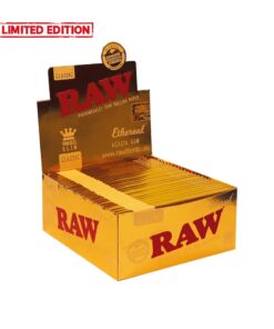 Αυτά τα χαρτάκια RAW Ethereal είναι ο ορισμός του Ethereal: εξαιρετικά ευαίσθητα και ελαφριά με τρόπο που φαίνεται να μην είναι αυτού του κόσμου, κατασκευασμένα από ένα απολύτως τέλειο υλικό. Είναι προσεκτικά κατασκευασμένα για να εξασφαλίσουν μια κορυφαία εμπειρία για έμπειρους στρίφτες. Είναι ένα λεπτό, king-size ρολό χαρτί κατασκευασμένο από υψηλής ποιότητας φυσικά υλικά, με φυσική γραμμή κόλλα ακακίας για τη σφράγισή τους.